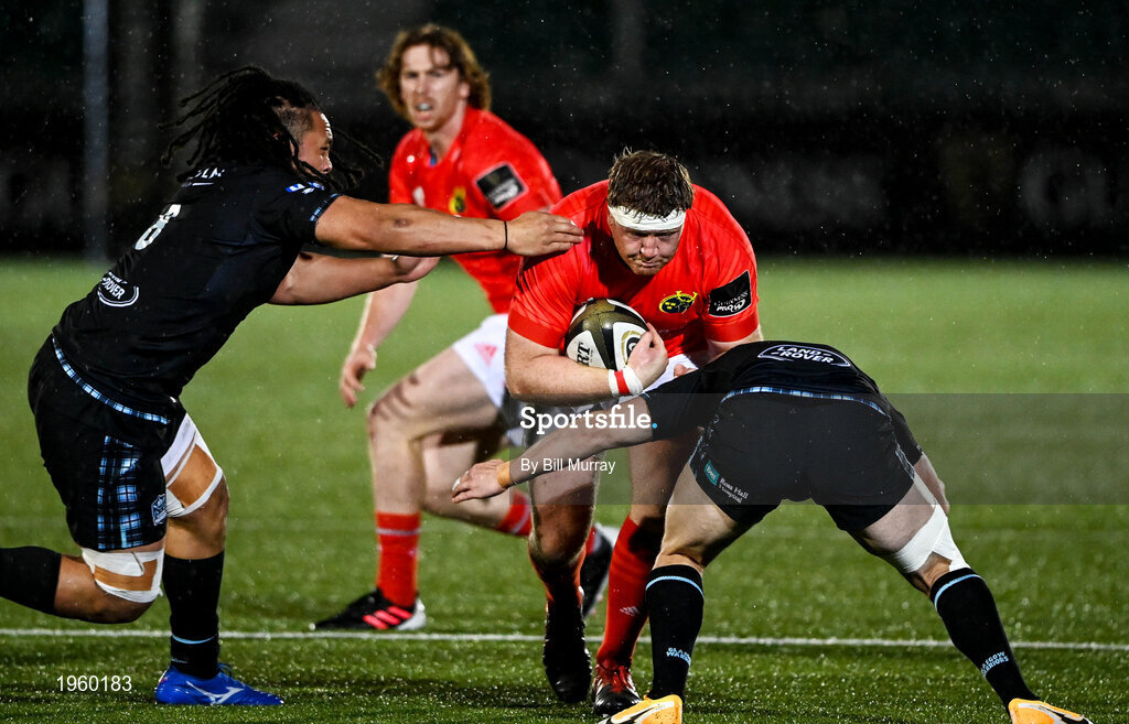 23 November 2020; Stephen Archer of Munster is tackled by Robbie Fergusson of Glasgow Warriors during the Guinness PRO14 match between Glasgow Warriors and Munster at Scotstoun Stadium in Glasgow, Scotland. Photo by Bill Murray/Sportsfile