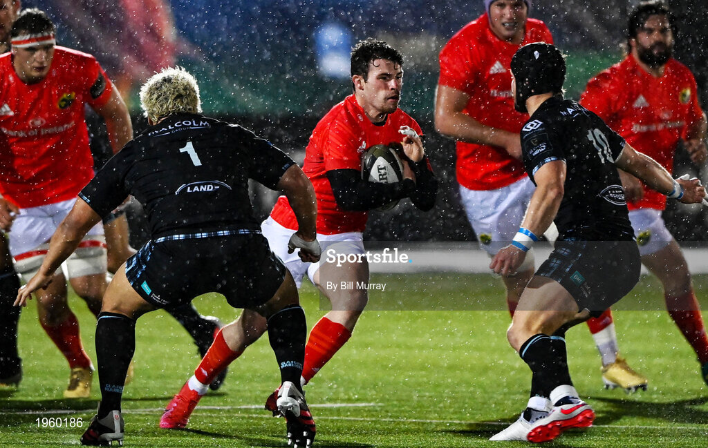 23 November 2020; Calvin Nash of Munster takes on Pete Horne of Glasgow Warriors during the Guinness PRO14 match between Glasgow Warriors and Munster at Scotstoun Stadium in Glasgow, Scotland. Photo by Bill Murray/Sportsfile