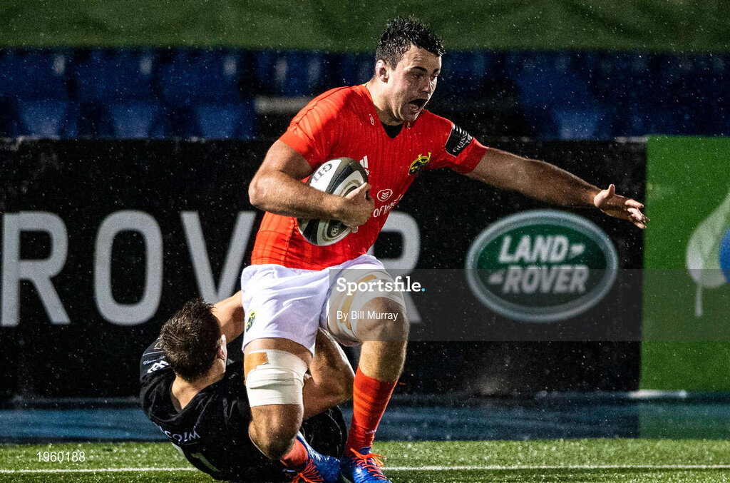 23 November 2020; Robbie Nairn of Glasgow Warriors is tackled by Jack O'Sullivan of Munster during the Guinness PRO14 match between Glasgow Warriors and Munster at Scotstoun Stadium in Glasgow, Scotland. Photo by Bill Murray/Sportsfile