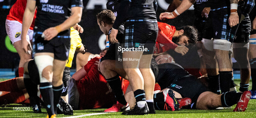 23 November 2020; Gavin Coombes of Munster scores his side's third try during the Guinness PRO14 match between Glasgow Warriors and Munster at Scotstoun Stadium in Glasgow, Scotland. Photo by Bill Murray/Sportsfile
