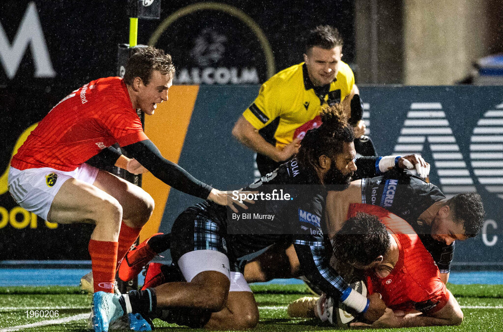23 November 2020; Jean Kleyn of Munster dives to score his side's fourth try during the Guinness PRO14 match between Glasgow Warriors and Munster at Scotstoun Stadium in Glasgow, Scotland. Photo by Bill Murray/Sportsfile?