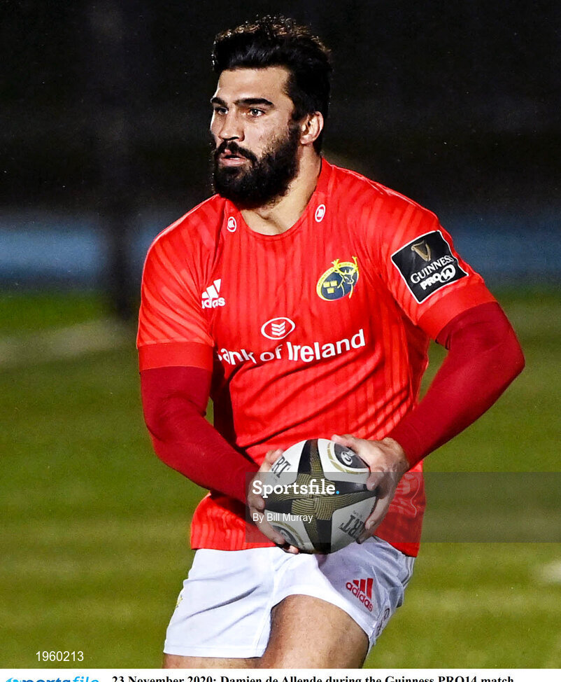 23 November 2020; Damien de Allende during the Guinness PRO14 match between Glasgow Warriors and Munster at Scotstoun Stadium in Glasgow, Scotland. Photo by Bill Murray/Sportsfile