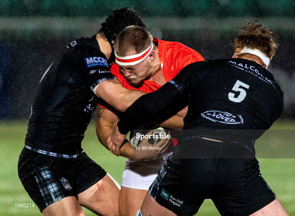 23 November 2020; Keynan Knox of Munster is tackled by Rob Harley of Munster during the Guinness PRO14 match between Glasgow Warriors and Munster at Scotstoun Stadium in Glasgow, Scotland. Photo by Bill Murray/Sportsfile