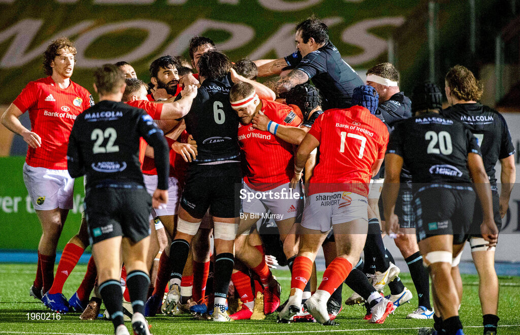 23 November 2020; Players tussle during the Guinness PRO14 match between Glasgow Warriors and Munster at Scotstoun Stadium in Glasgow, Scotland. Photo by Bill Murray/Sportsfile