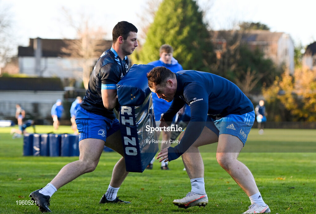 25 November 2020; Andrew Smith, left, and Peter Dooley during Leinster Rugby squad training at UCD in Dublin. Photo by Ramsey Cardy/Sportsfile
