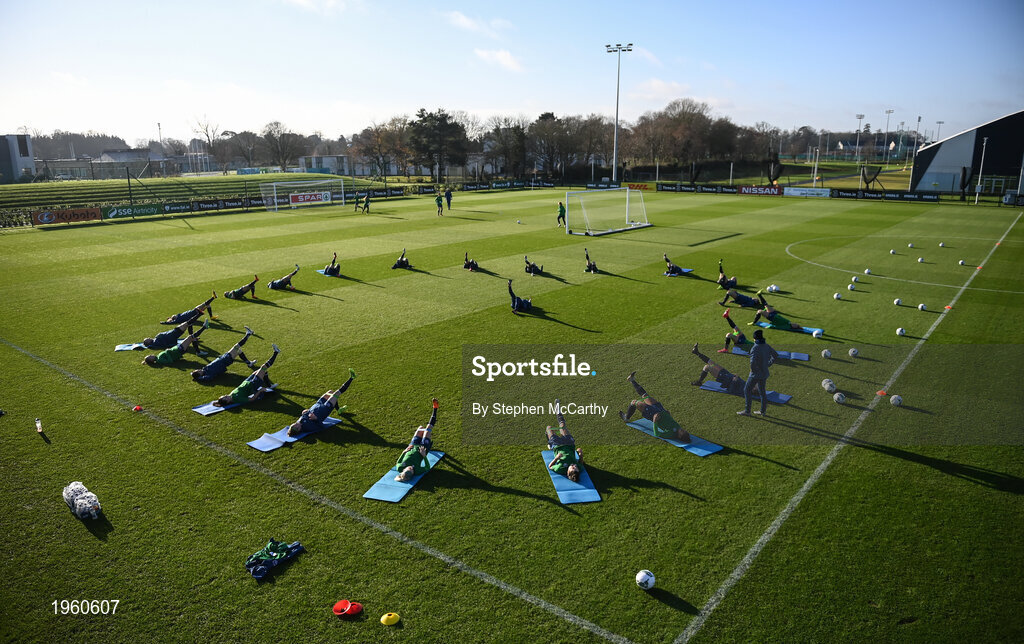 25 November 2020; Players during activation prior to a Republic of Ireland Women training session at the FAI National Training Centre in Abbotstown, Dublin. Photo by Stephen McCarthy/Sportsfile