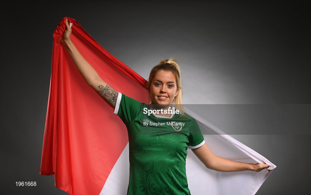 27 November 2020; Republic of Ireland's Denise O'Sullivan, from Cork, poses during a Republic of Ireland Women portrait session at the Castleknock Hotel in Dublin. Photo by Stephen McCarthy/Sportsfile