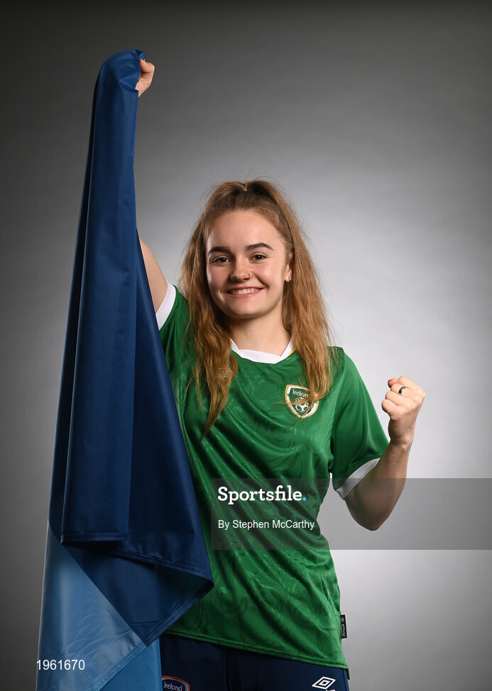 27 November 2020; Republic of Ireland's Izzy Atkinson, from Dublin, poses during a Republic of Ireland Women portrait session at the Castleknock Hotel in Dublin. Photo by Stephen McCarthy/Sportsfile