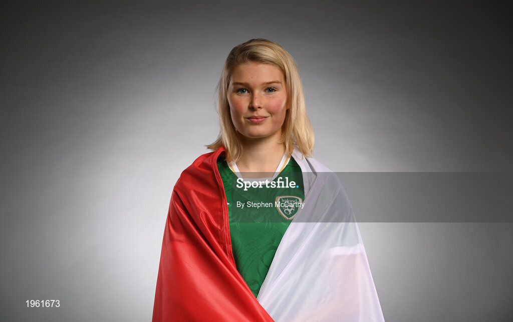 27 November 2020; Republic of Ireland's Eabha O'Mahony, from Cork, poses during a Republic of Ireland Women portrait session at the Castleknock Hotel in Dublin. Photo by Stephen McCarthy/Sportsfile