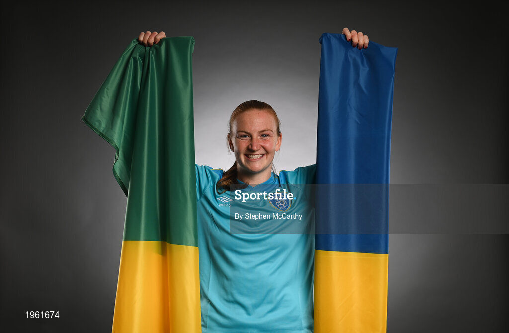 27 November 2020; Republic of Ireland's Courtney Brosnan, whose grandfather Michael Brosnan hails from Kerry, and grandmother Margaret Brosnan hails from Roscommon, poses during a Republic of Ireland Women portrait session at the Castleknock Hotel in Dublin. Photo by Stephen McCarthy/Sportsfile