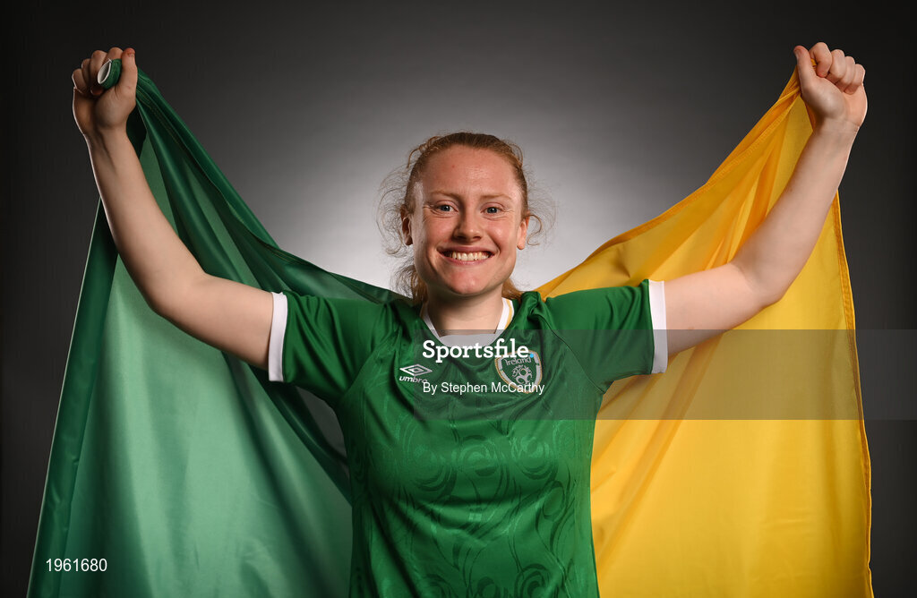 27 November 2020; Republic of Ireland's Amber Barrett, from Donegal, poses during a Republic of Ireland Women portrait session at the Castleknock Hotel in Dublin. Photo by Stephen McCarthy/Sportsfile