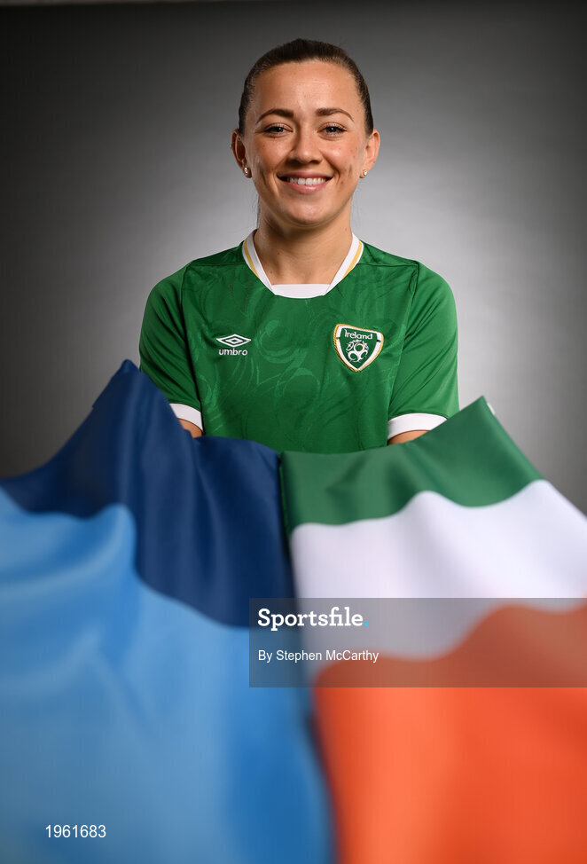 27 November 2020; Republic of Ireland's Katie McCabe, from Dublin, poses during a Republic of Ireland Women portrait session at the Castleknock Hotel in Dublin. Photo by Stephen McCarthy/Sportsfile