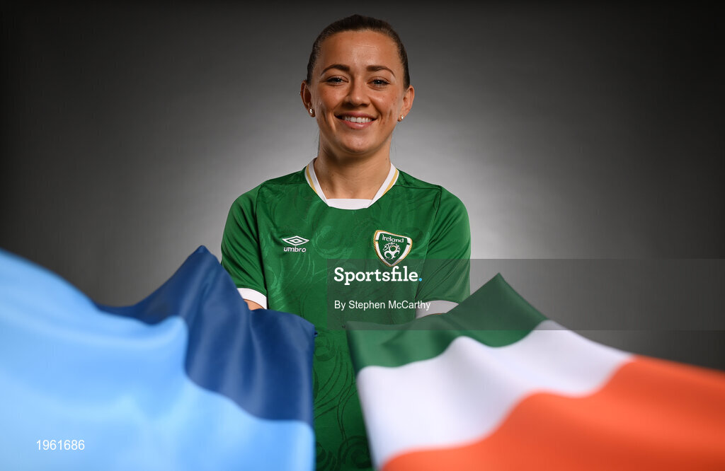 27 November 2020; Republic of Ireland's Katie McCabe, from Dublin, poses during a Republic of Ireland Women portrait session at the Castleknock Hotel in Dublin. Photo by Stephen McCarthy/Sportsfile