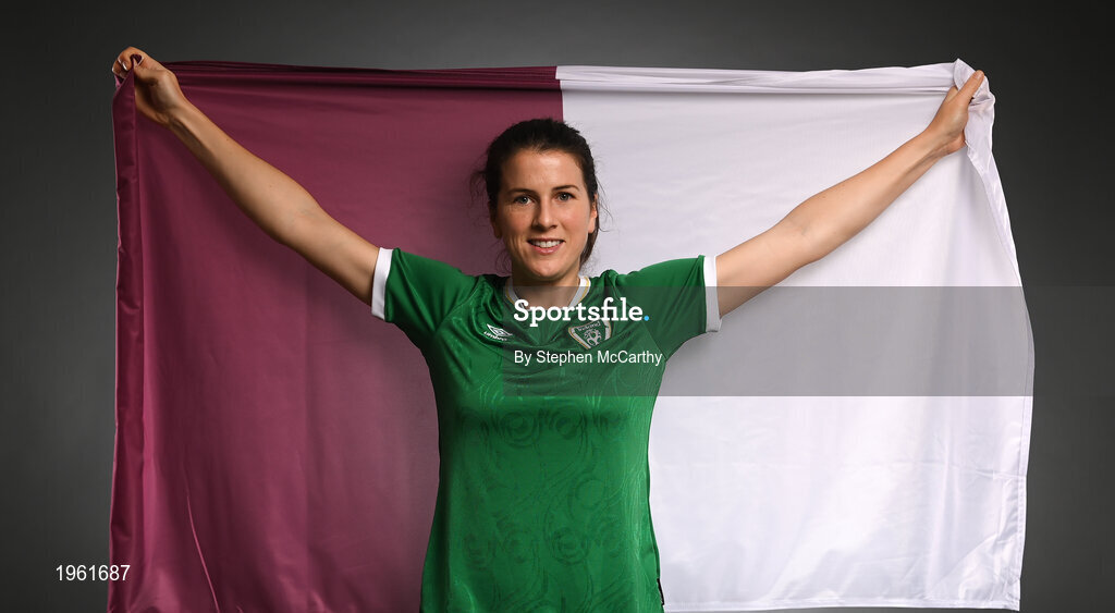 27 November 2020; Republic of Ireland's Niamh Fahey, from Galway, poses during a Republic of Ireland Women portrait session at the Castleknock Hotel in Dublin. Photo by Stephen McCarthy/Sportsfile