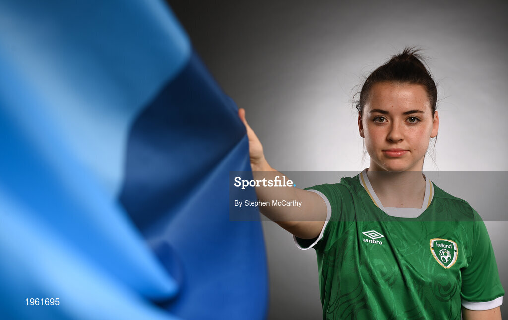 27 November 2020; Republic of Ireland's Emily Whelan, from Dublin, poses during a Republic of Ireland Women portrait session at the Castleknock Hotel in Dublin. Photo by Stephen McCarthy/Sportsfile
