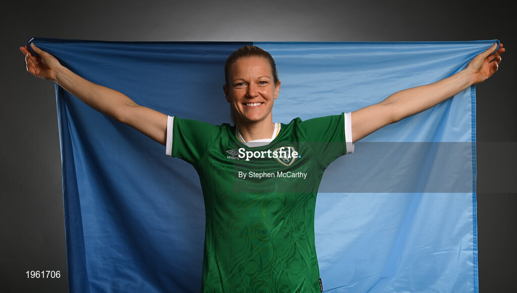 27 November 2020; Republic of Ireland's Diane Caldwell, from Dublin, poses during a Republic of Ireland Women portrait session at the Castleknock Hotel in Dublin. Photo by Stephen McCarthy/Sportsfile