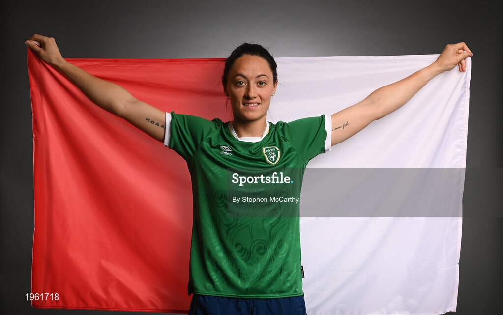 27 November 2020; Republic of Ireland's Megan Campbell, from Louth, poses during a Republic of Ireland Women portrait session at the Castleknock Hotel in Dublin. Photo by Stephen McCarthy/Sportsfile