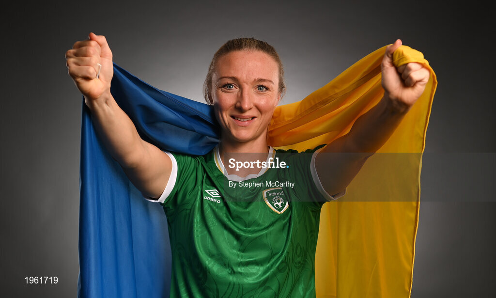 27 November 2020; Republic of Ireland's Louise Quinn, from Wicklow, poses during a Republic of Ireland Women portrait session at the Castleknock Hotel in Dublin. Photo by Stephen McCarthy/Sportsfile