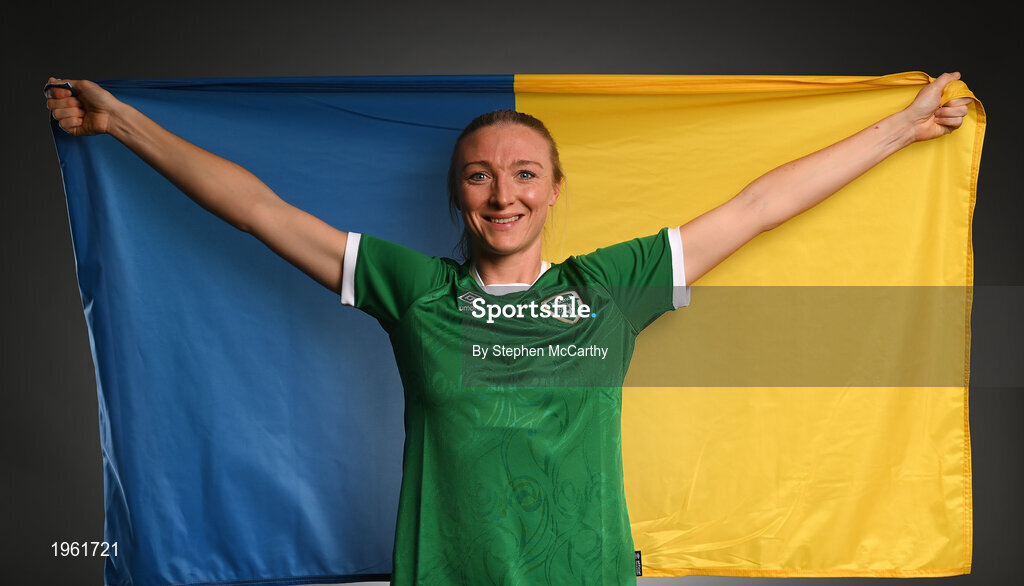 27 November 2020; Republic of Ireland's Louise Quinn, from Wicklow, poses during a Republic of Ireland Women portrait session at the Castleknock Hotel in Dublin. Photo by Stephen McCarthy/Sportsfile
