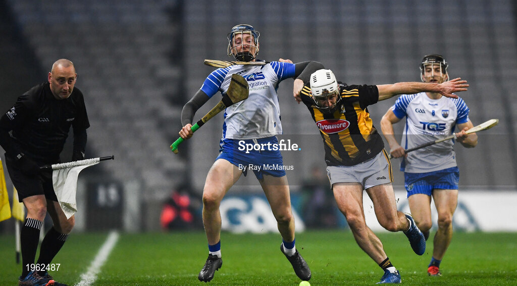 28 November 2020; Kieran Bennett of Waterford is fouled by Conor Fogarty of Kilkenny resulting in a free for Waterford during the GAA Hurling All-Ireland Senior Championship Semi-Final match between Kilkenny and Waterford at Croke Park in Dublin. Photo by Ray McManus/Sportsfile