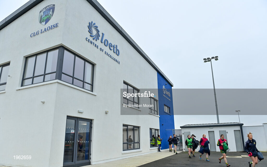 28 November 2020; The Meath team make their way to the pitch prior to the TG4 All-Ireland Intermediate Ladies Football Championship Semi-Final match between Clare and Meath at MW Hire O'Moore Park in Portlaoise, Laois. Photo by Brendan Moran/Sportsfile