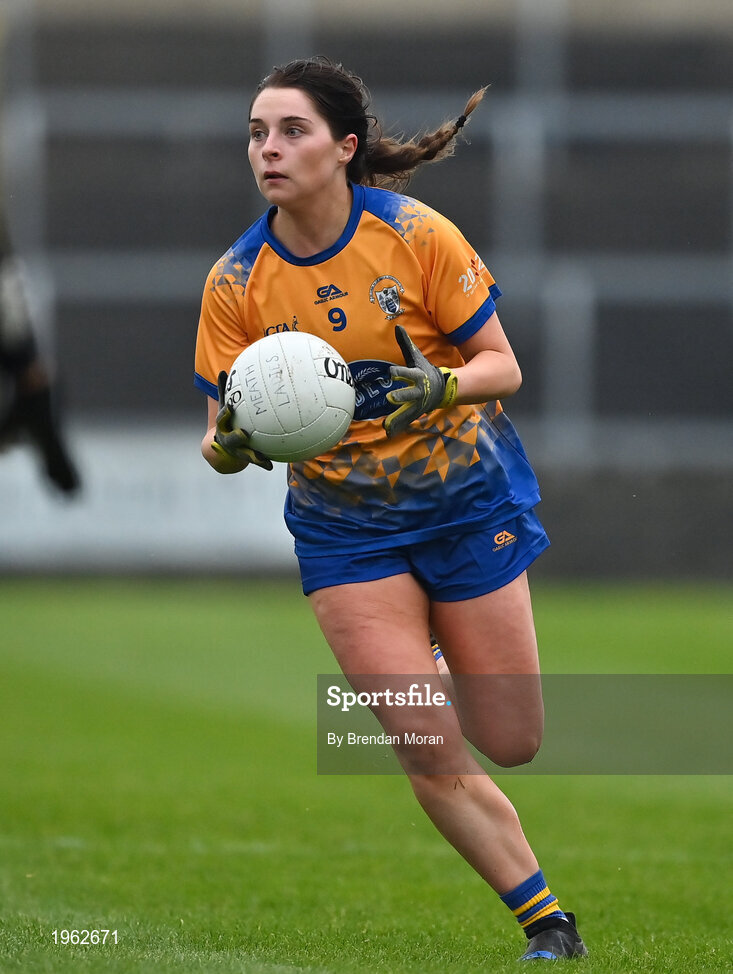 28 November 2020; Caoimhe Harvey of Clare during the TG4 All-Ireland Intermediate Ladies Football Championship Semi-Final match between Clare and Meath at MW Hire O'Moore Park in Portlaoise, Laois. Photo by Brendan Moran/Sportsfile