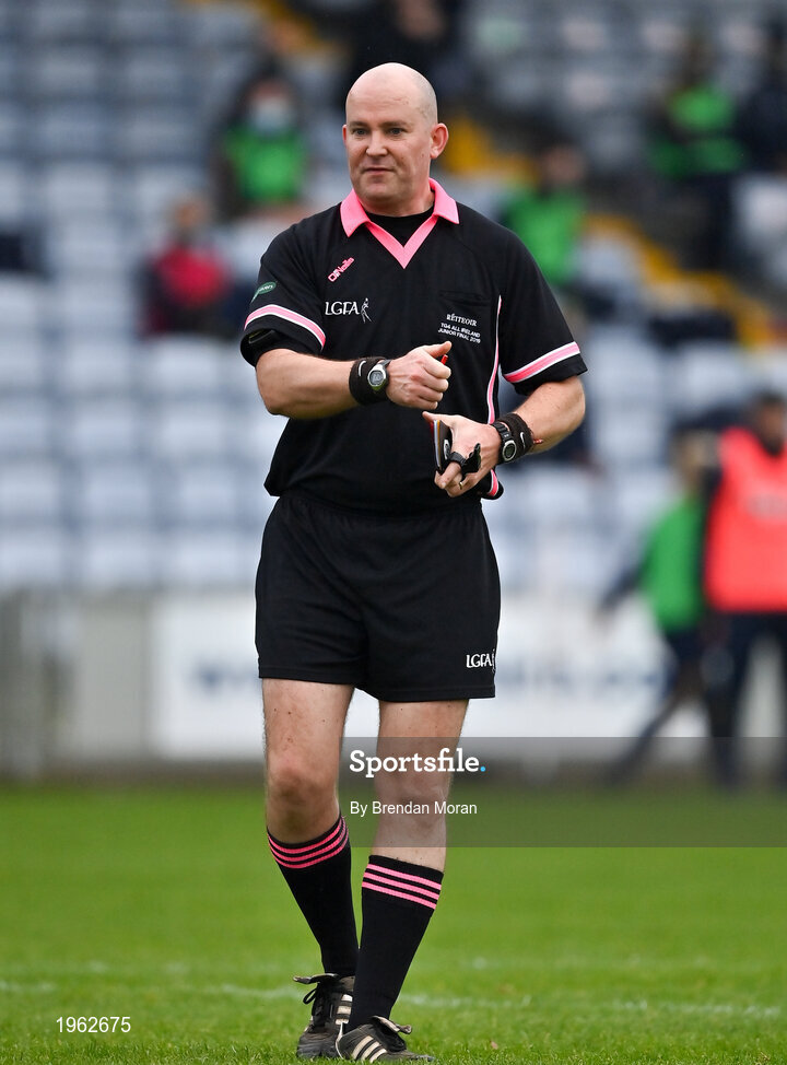 28 November 2020; Referee Shane Curley during the TG4 All-Ireland Intermediate Ladies Football Championship Semi-Final match between Clare and Meath at MW Hire O'Moore Park in Portlaoise, Laois. Photo by Brendan Moran/Sportsfile