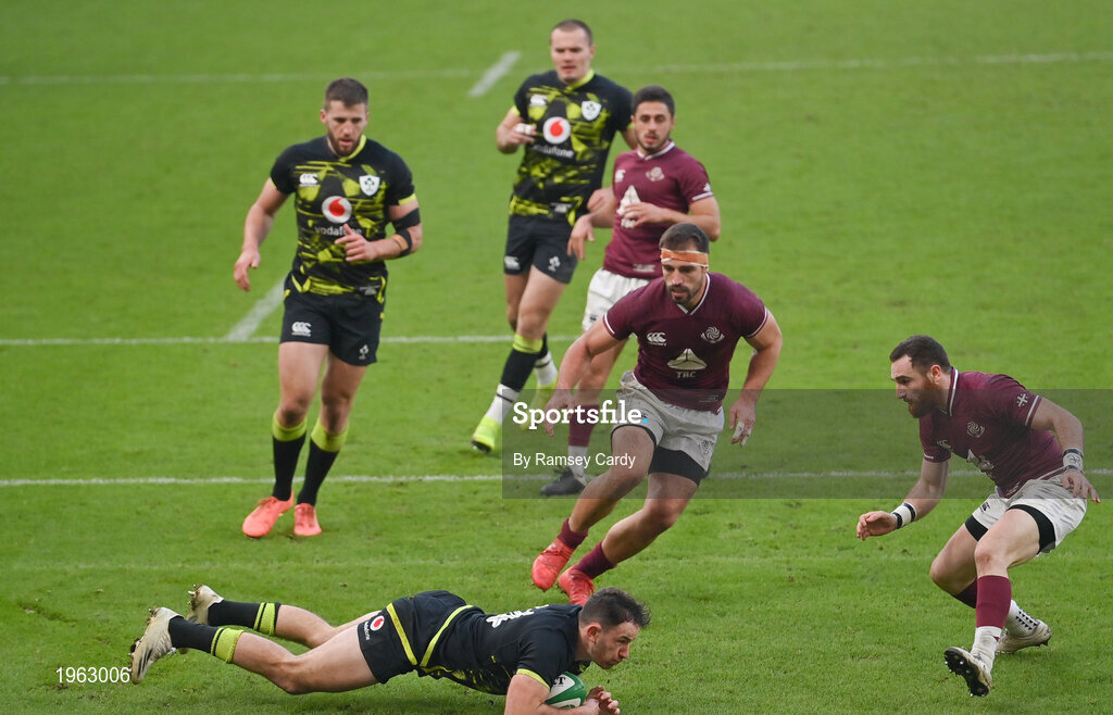 29 November 2020; Hugo Keenan of Ireland scores his side's second try during the Autumn Nations Cup match between Ireland and Georgia at the Aviva Stadium in Dublin. Photo by Ramsey Cardy/Sportsfile