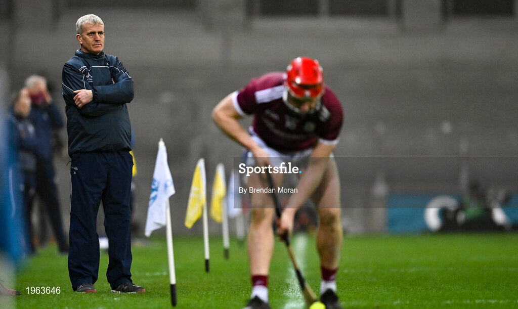 29 November 2020; Limerick manager John Kiely looks on as Joe Canning of Galway prepares to take a sideline cut during the GAA Hurling All-Ireland Senior Championship Semi-Final match between Limerick and Galway at Croke Park in Dublin. Photo by Brendan Moran/Sportsfile
