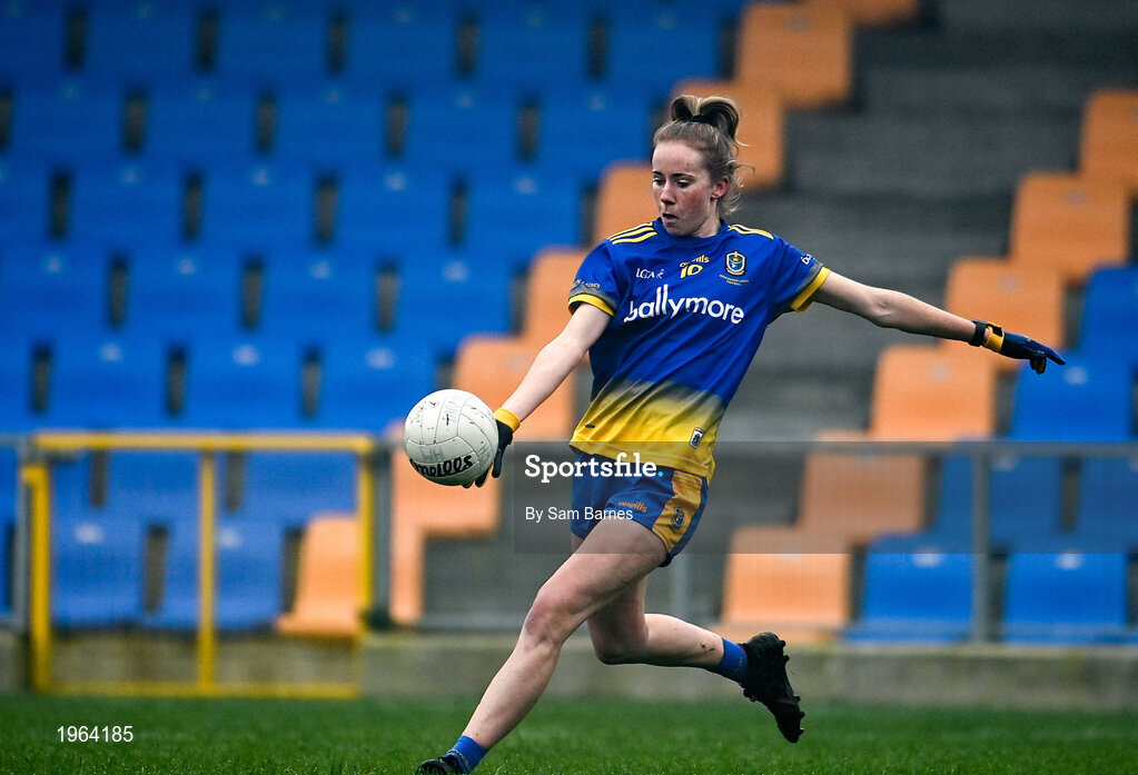 29 November 2020; Laura Fleming of Roscommon takes a free during the TG4 All-Ireland Intermediate Ladies Football Championship Semi-Final match between Roscommon and Westmeath at Glennon Brothers Pearse Park in Longford. Photo by Sam Barnes/Sportsfile