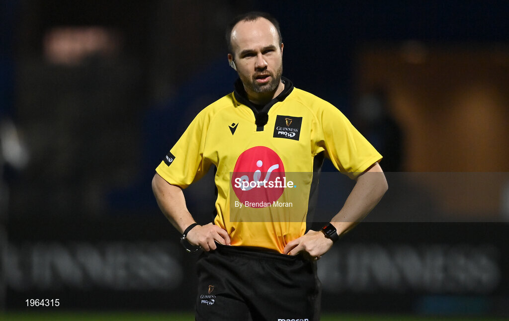 22 November 2020; Referee Mike Adamson during the Guinness PRO14 match between Leinster and Cardiff Blues at RDS Arena in Dublin. Photo by Brendan Moran/Sportsfile