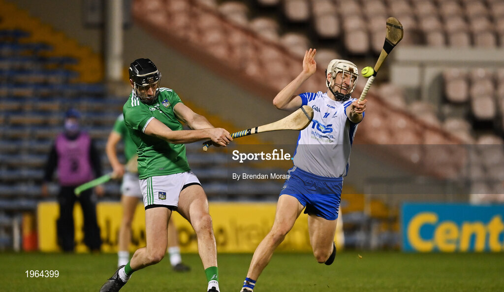 15 November 2020; Diarmaid Byrnes of Limerick in action against Jack Fagan of Waterford during the Munster GAA Hurling Senior Championship Final match between Limerick and Waterford at Semple Stadium in Thurles, Tipperary. Photo by Brendan Moran/Sportsfile