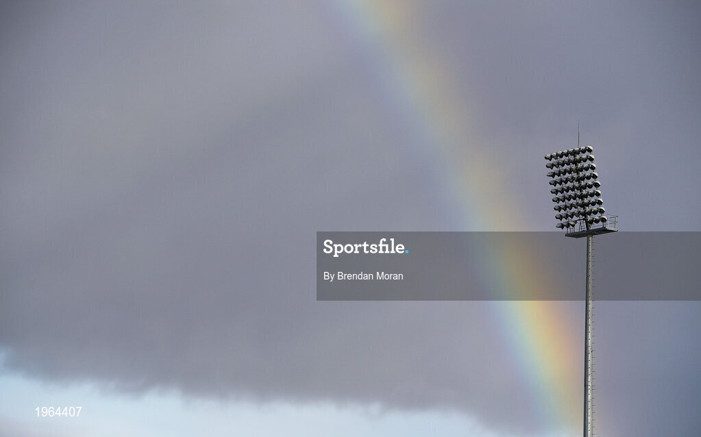 15 November 2020; A rainbow is seen near the floodlights during the Munster GAA Hurling Senior Championship Final match between Limerick and Waterford at Semple Stadium in Thurles, Tipperary. Photo by Brendan Moran/Sportsfile