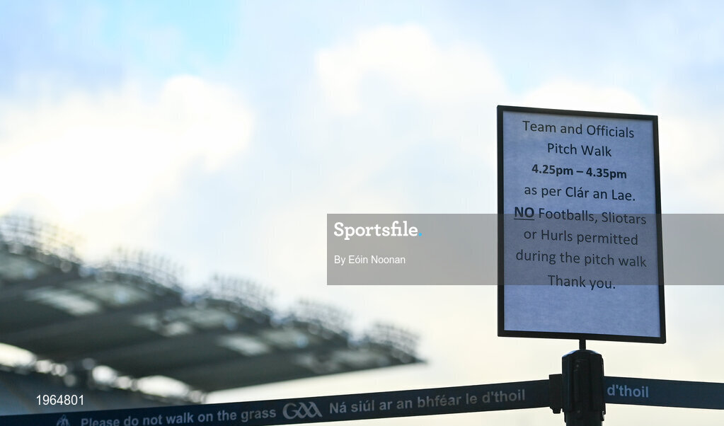 5 December 2020; A view of a sign telling teams and officials when the pitch walk is permitted prior to the GAA Football All-Ireland Senior Championship Semi-Final match between Dublin and Cavan at Croke Park in Dublin. Photo by Eóin Noonan/Sportsfile