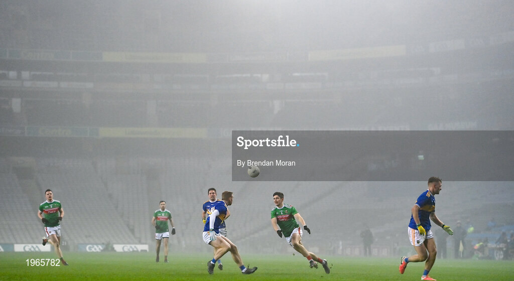 6 December 2020; Conor Loftus of Mayo in action against Dáire Brennan of Tipperary during the GAA Football All-Ireland Senior Championship Semi-Final match between Mayo and Tipperary at Croke Park in Dublin. Photo by Brendan Moran/Sportsfile