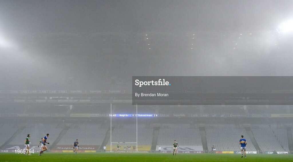 6 December 2020; A general view of the action amid heavy fog during the GAA Football All-Ireland Senior Championship Semi-Final match between Mayo and Tipperary at Croke Park in Dublin. Photo by Brendan Moran/Sportsfile