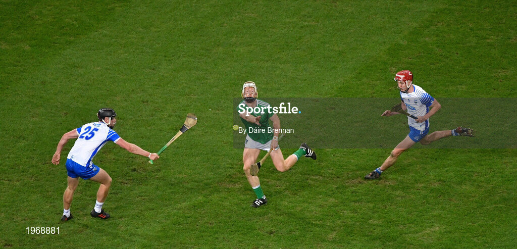 13 December 2020; Cian Lynch of Limerick in action against Iarlaith Daly, left, and Calum Lyons of Waterford during the GAA Hurling All-Ireland Senior Championship Final match between Limerick and Waterford at Croke Park in Dublin. Photo by Daire Brennan/Sportsfile