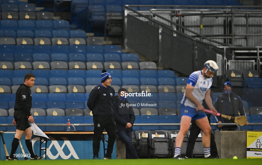 13 December 2020; Waterford manager Liam Cahill watches Stephen Bennett prepare to take a free during the GAA Hurling All-Ireland Senior Championship Final match between Limerick and Waterford at Croke Park in Dublin. Photo by Piaras Ó Mídheach/Sportsfile