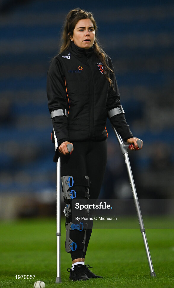 12 December 2020; Injured Kilkenny player Katie Power prior to the Liberty Insurance All-Ireland Senior Camogie Championship Final match between Galway and Kilkenny at Croke Park in Dublin. Photo by Piaras Ó Mídheach/Sportsfile