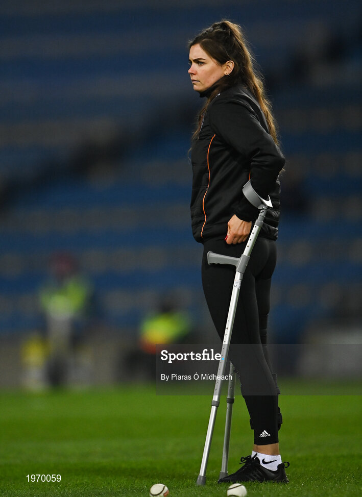 12 December 2020; Injured Kilkenny player Katie Power prior to the Liberty Insurance All-Ireland Senior Camogie Championship Final match between Galway and Kilkenny at Croke Park in Dublin. Photo by Piaras Ó Mídheach/Sportsfile