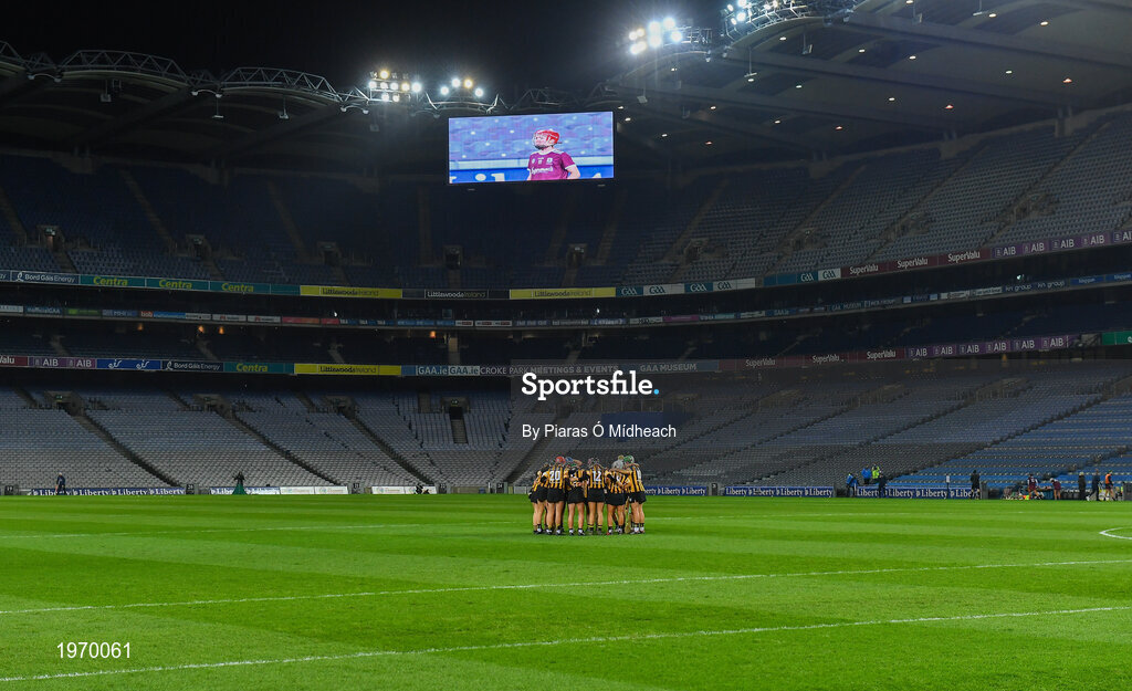 12 December 2020; Kilkenny players before the Liberty Insurance All-Ireland Senior Camogie Championship Final match between Galway and Kilkenny at Croke Park in Dublin. Photo by Piaras Ó Mídheach/Sportsfile