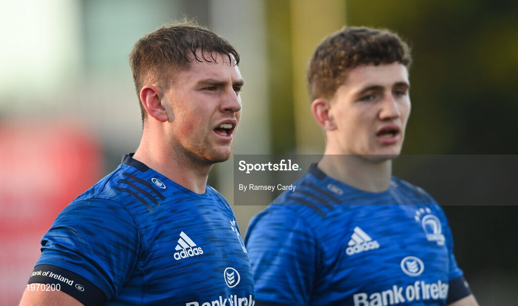 12 December 2020; Marcus Hanan, left, and Cormac Foley of Leinster A during the A Interprovincial Friendly match between Leinster A and Connacht Eagles at Energia Park in Dublin. Photo by Ramsey Cardy/Sportsfile