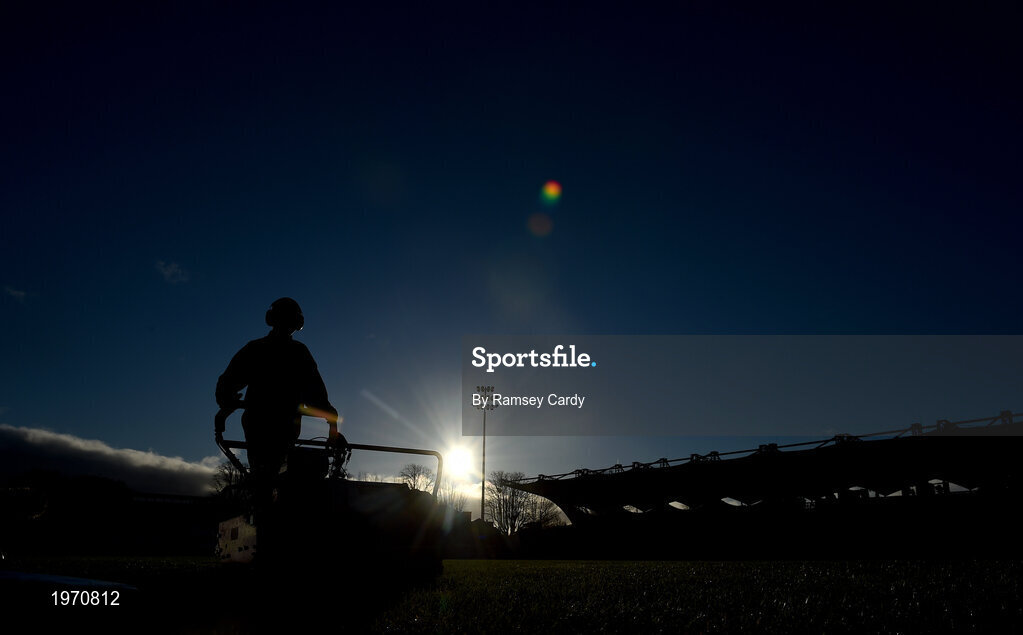 19 December 2020; RDS groundsman Gary Deakins prepares the pitch ahead of the RDS Arena ahead of the Heineken Champions Cup Pool A Round 2 match between Leinster and Northampton Saints at the RDS Arena in Dublin. Photo by Ramsey Cardy/Sportsfile