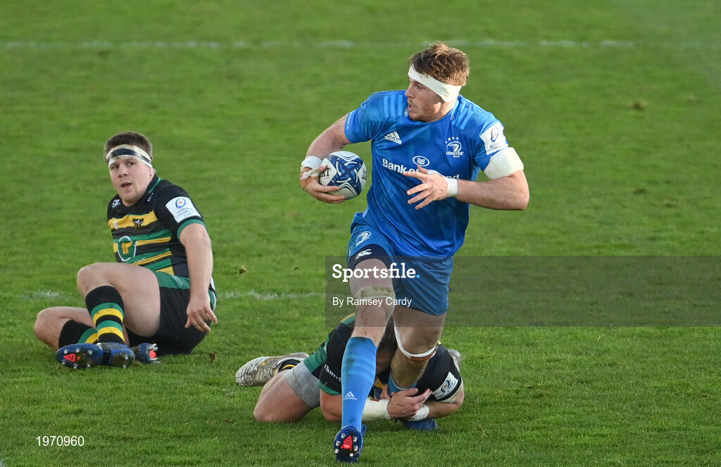19 December 2020; Ryan Baird of Leinster is tackled by Alex Waller of Northampton Saints during the Heineken Champions Cup Pool A Round 2 match between Leinster and Northampton Saints at the RDS Arena in Dublin. Photo by Ramsey Cardy/Sportsfile