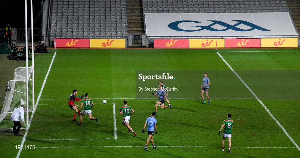 19 December 2020; Con O'Callaghan of Dublin scores his side's second goal during the GAA Football All-Ireland Senior Championship Final match between Dublin and Mayo at Croke Park in Dublin. Photo by Stephen McCarthy/Sportsfile