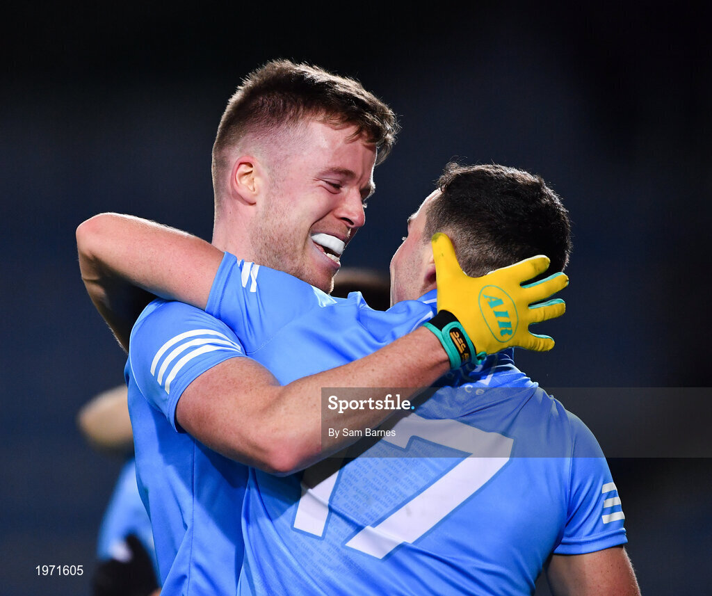 19 December 2020; Robert McDaid, left, and Colm Basquel of Dublin celebrate following the GAA Football All-Ireland Senior Championship Final match between Dublin and Mayo at Croke Park in Dublin. Photo by Sam Barnes/Sportsfile