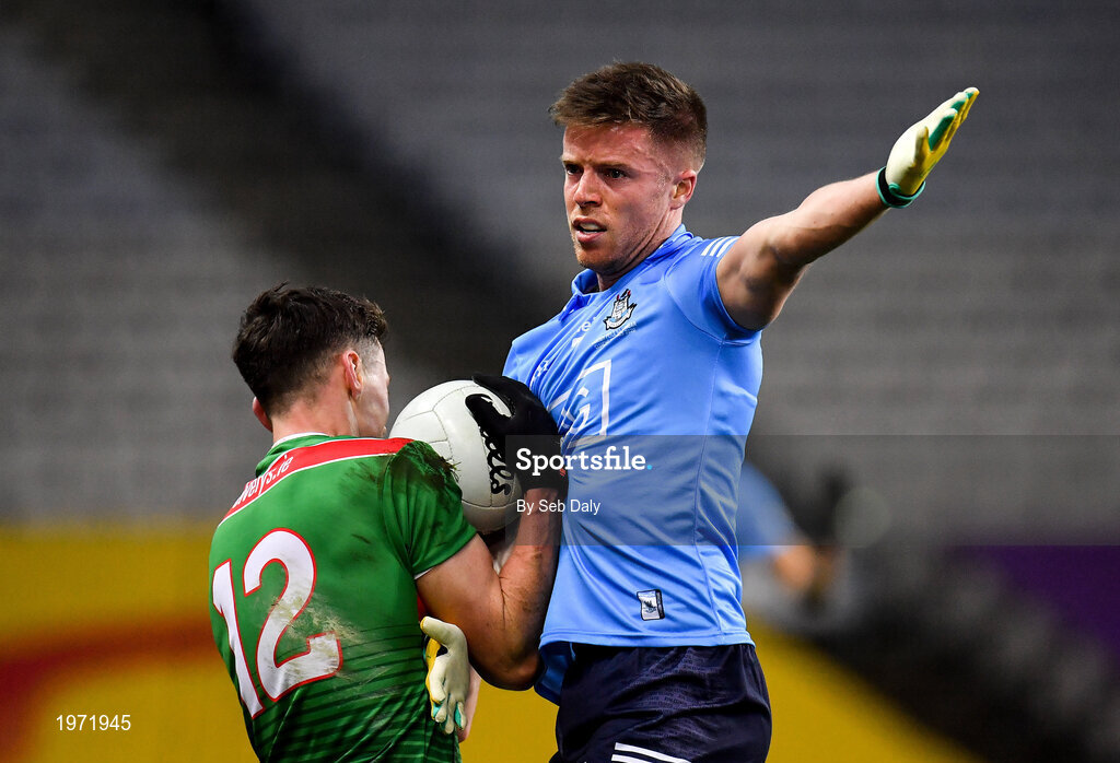 19 December 2020; Robert McDaid of Dublin and Diarmuid O'Connor of Mayo tussle for the ball during the GAA Football All-Ireland Senior Championship Final match between Dublin and Mayo at Croke Park in Dublin. Photo by Seb Daly/Sportsfile