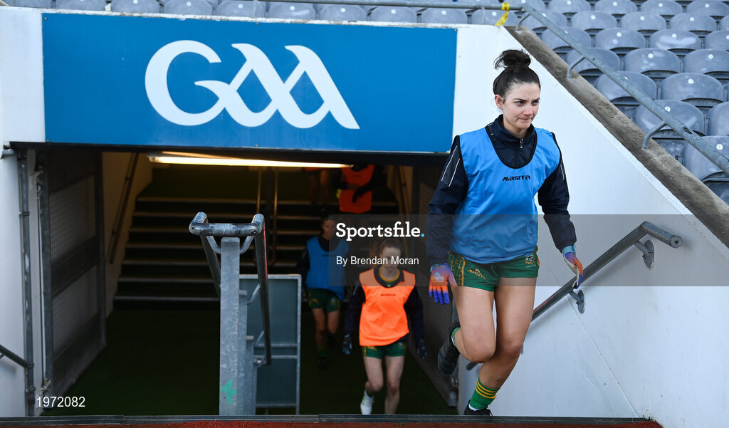20 December 2020; Meath captain Máire O'Shaughnessy leads her side out prior to the TG4 All-Ireland Intermediate Ladies Football Championship Final match between Meath and Westmeath at Croke Park in Dublin. Photo by Brendan Moran/Sportsfile