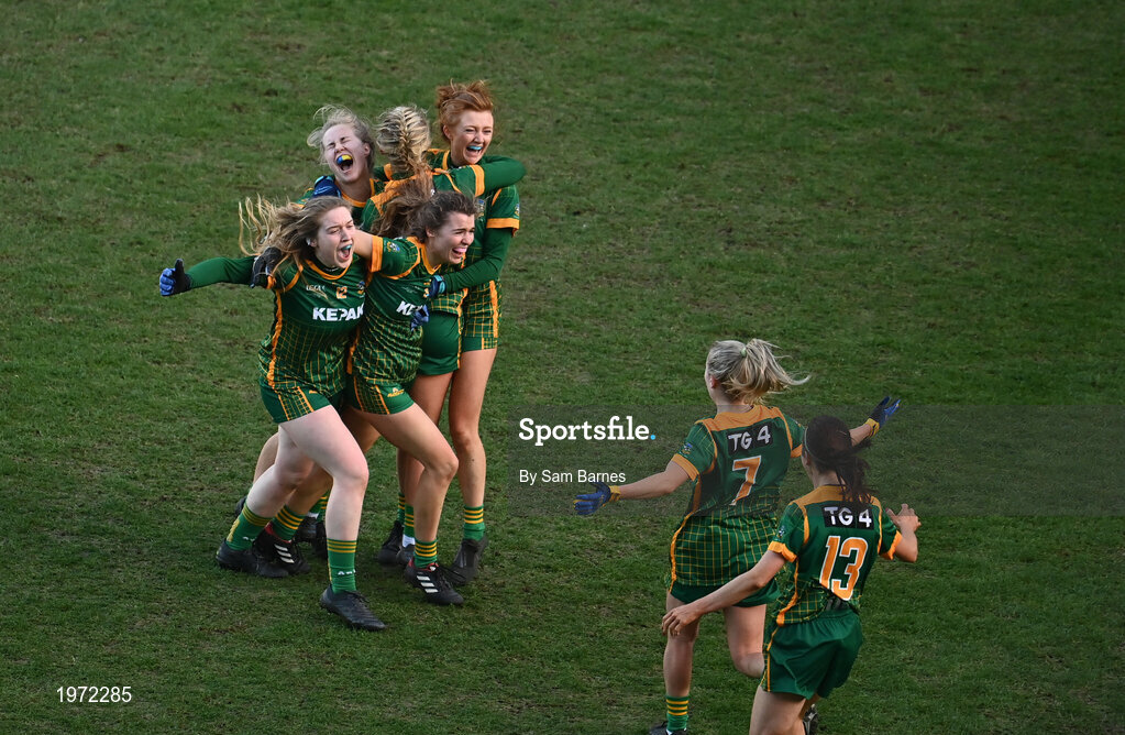 20 December 2020; Meath players celebrate following the TG4 All-Ireland Intermediate Ladies Football Championship Final match between Meath and Westmeath at Croke Park in Dublin. Photo by Sam Barnes/Sportsfile