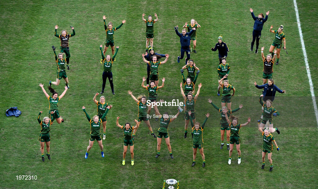 20 December 2020; Meath players celebrate with the cup following the TG4 All-Ireland Intermediate Ladies Football Championship Final match between Meath and Westmeath at Croke Park in Dublin. Photo by Sam Barnes/Sportsfile